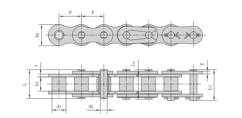 注意:上述規格的雙排鏈和三排鏈、雙節距輸送鏈系列依照要求也適合鍍鋅。