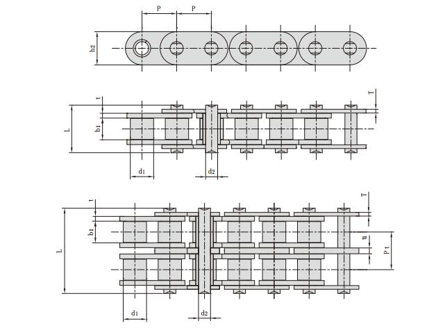 汽車發(fā)動(dòng)機(jī)正時(shí)鏈條主要型號(hào)有:節(jié)距,滾子直徑,內(nèi)節(jié)內(nèi)寬,銷軸直徑,銷軸長(zhǎng)度,內(nèi)鏈板高度,鏈板厚度,排距,抗拉強(qiáng)度,每米長(zhǎng)重