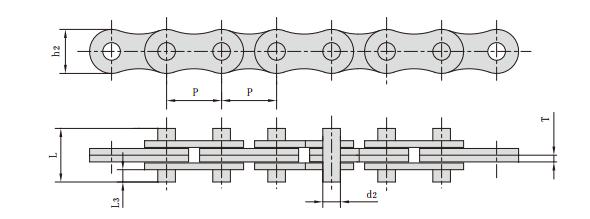 鏈號 節距 鏈板高度 鏈板厚度 銷軸直徑 銷軸長度 抗拉強度 平均抗拉強度 每米重量