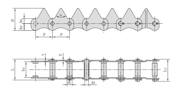 鏈號 節距 滾子直徑 內節內寬 銷軸直徑 銷軸長度 齒形角 鏈板厚度 鏈板尺寸 抗拉強度 平均抗拉強度