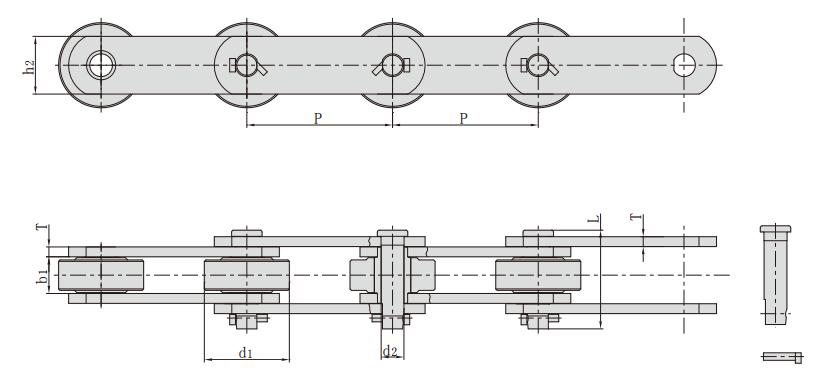 鏈條型號 節距 滾子直徑 內節內寬 銷軸直徑 銷軸長度 鏈板高度 鏈板厚度 抗拉強度 每米長重